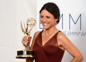 Julia Louis-Dreyfus posing with her Emmy Award