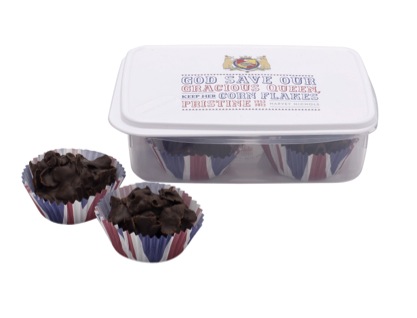 The limited edition Tupperware box, complete with six cornflakes cakes made with Royal Warrant holders Charbonnel et Walker’s dark chocolate, is priced at £14.95 exclusively in Harvey Nichols Foodmarkets.