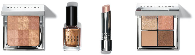 Bronze – Brightening Finish Powder in Bronze Glow (£40.00), Nail Polish in Bronze Shimmer (£11.00), Sheer Lip Color in Pink Gold (£19.00), Eye Palette in Bronze (£35.00).