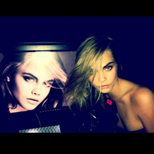 Cara tweeted a picture of herself behind the scenes whilst shooting the brand new campaign for La Perla.