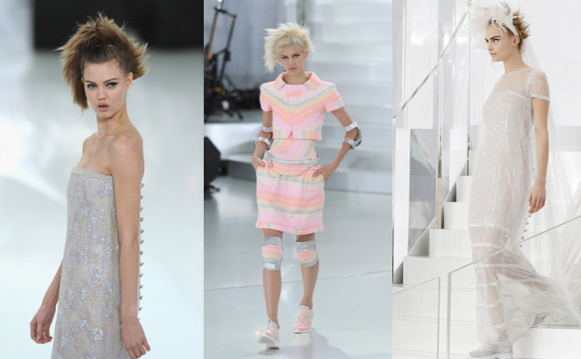 If there is one show in the fashion calendar, that no matter what the seasonal trends, always screams fairytale, it’s the Chanel Haute Couture show. This year’s show at the Grand Palais in Paris was no exception. Just a few months before the historic venue had played host to robotic Chanel perfume bottles and specially commissioned art work for Karl Lagerfeld’s gallery inspired Chanel show. This time around he had transformed the Grand Palais into a bright white house of minimalism that formed the stage for the Chanel Haute Couture Collection SS14.