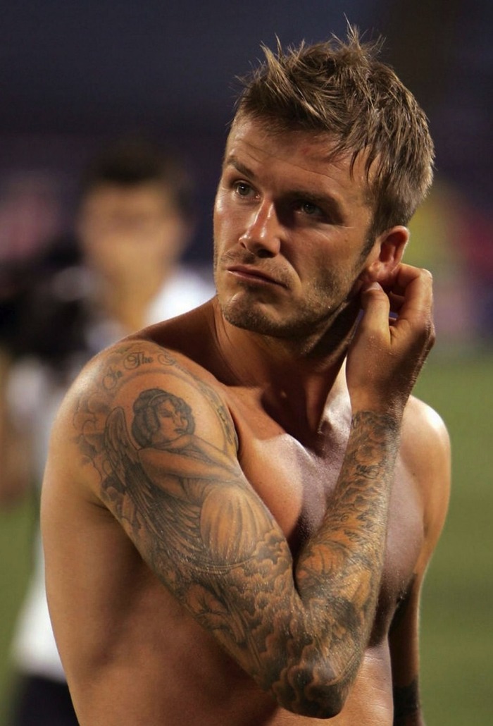 We don’t usually need an excuse to ogle over David Beckhams super toned torso, but this week whilst meeting fans in Beijing, DB has kindly given us one by flashing his bare body to showcase a hanzi-type tattoo that runs down the side of his body.