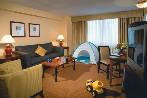 The hotel offers a limited number of Family Fun Suites which are like a home away from home and  feature a living room and kitchen as well as 2  separate bedrooms. Bunk beds are offered along with a toy selection and game consoles. As any parent of young kids will know, a separate living space is key when you want (nay, need) some evening time to yourself – and it’s not so common a find.