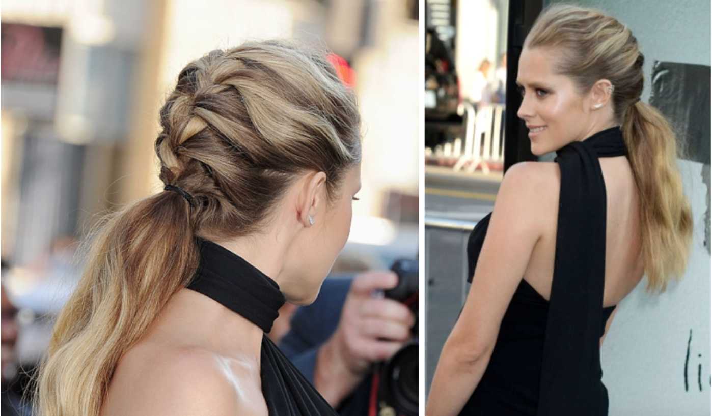 Last night, gorgeous Hollywood starlet Teresa Palmer stepped out on the red carpet for the premiere of her new movie, Lights Out. She wore a black asymmetric Michael Kors dress, but what really caught our eye was her wonderful swept back braid with messy ponytail – which was created by TRESemmé Celebrity Stylist John D.