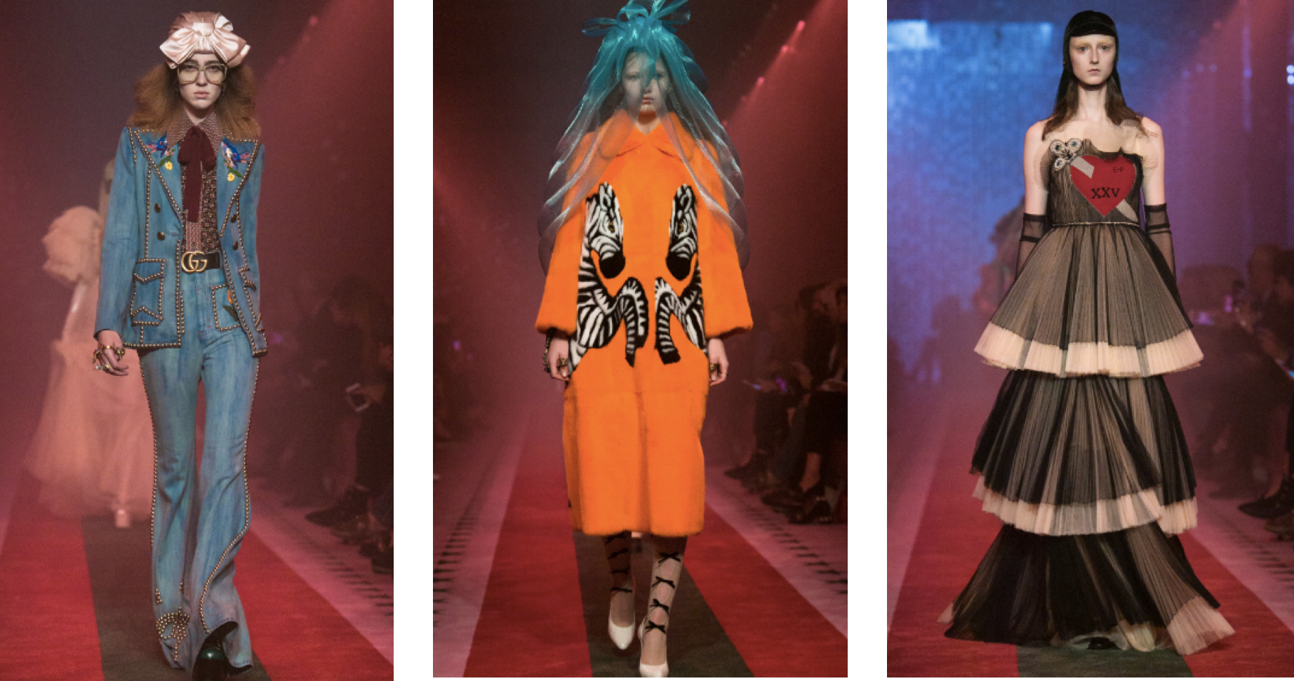 The show took place against a red backdrop highlighted the bold designs as they came down the runway. A studded denim pantsuit, an orange zebra overcoat (not joking), and a tiered black gown stood out as my favorite pieces. The show notes stated the collection was, “an intentionally unsystematic thought,” yet somehow the it cohesive in a way that only Gucci could pull off.