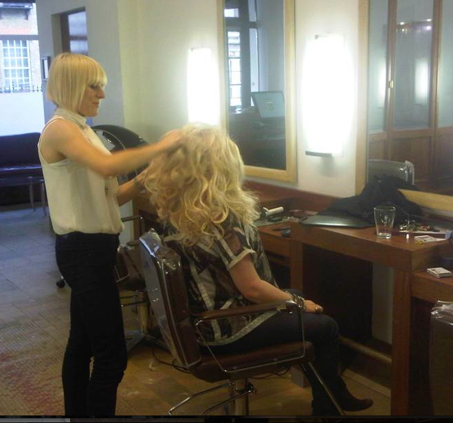 Alex set about this by trimming them once they were on my head to see how they worked. She said, ‘For hair extensions you must use a razor to cut them because it gives a textured look. Scissors would be too clumpy and not look like real hair.’