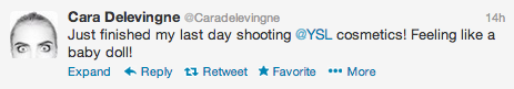 Delevingne last night tweeted, “Just finished my last day shooting @YSL cosmetics! Feeling like a baby doll!.”