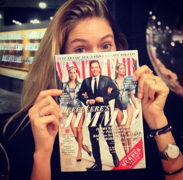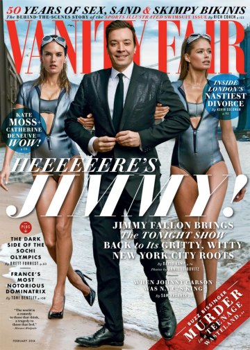 ‘Okay – this is one of those – is this happening – moments. As a kid from upstate NY – Vanity Fair is… a major investment. Yes. You know it, all of the big stars are on it – classy, cool and untouchable. I WOULD’NT even dream to be mentioned in it let alone the cover. To spend my money to buy a magazine was a giant deal. (Rolling Stone, Tigerbeat, MAD) But Vanity Fair? That is a down payment. Just BUYING A COPY meant that you know what’s up and you are doing well. I remember making that investment and reading and reading and keeping the magazine – like an old book. It was like the actors got a story (not necessarily the one they wanted) but a real story – plus Dominick Dunne murder mysteries – it kindof was a book.I still have some of my favorite magazines (SPIN, Details and Grand Royal (beastie boys fans know what I’m talking about)). To meet David Kamp and know he’s writing about me is weird. To have ANNIE LEIBOVITZ take a picture of you is a story alone! These supermodels Alessandra Ambrosio and Doutzen Kroes were in the east river at 7am in December FREEZING in a bathing suit (it’s the 50th ann of SI Swimsuit Issue) I was freezing in my suit as well but these guys were troopers. I asked them if they ever looked BAD in anything. They are so pretty. They said of course!! It was then that I realized I could’ve been a supermodel. Anyway- here I am. On the cover of Vanity Fair and I’m psyched, amazed, shocked and happy. Just so you know. J’