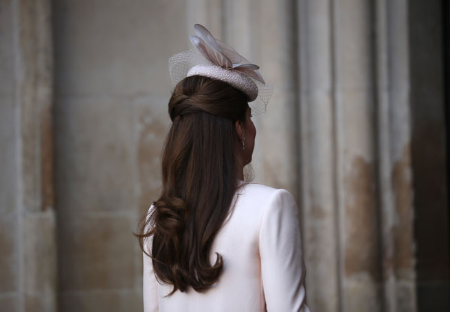But what we really adored. . . was Kate’s glossy-as-ever mane of hair – beautifully curled, with an intricate woven section at the crown of her (very royal) head.