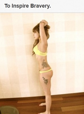 ‘Bulimia and anorexia since I was 15. But today I join the BODY REVOLUTION. To Inspire Bravery. And BREED some m$therf**king COMPASSION.’ She goes on to say, ‘my mother and I created the BORN THIS WAY FOUNDATION for one reason: “to inspire bravery. This profile is an extension of that dream. Be brave and celebrate with us your “perceived flaws,” as society tells us. May we make our flaws famous, and thus redefine the heinous.’