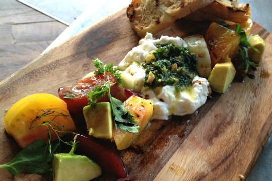 The chef is Mario Alberto who has cooked at Freddie Small’s and Chimu, a downtown Peruvian restaurant. He has an edge and an eye for a trend. We finished off with a pizza of eggplant, summer squash, burrata and thyme ($15). It was thin crusted and the burrata creamy and edged up by the thyme.