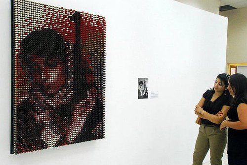 This is gorgeous. Palestinian artist Amer Shomali created a portrait of Leila Khaled, the woman known as the “poster girl of Palestinian militancy”, using the medium of lipstick.