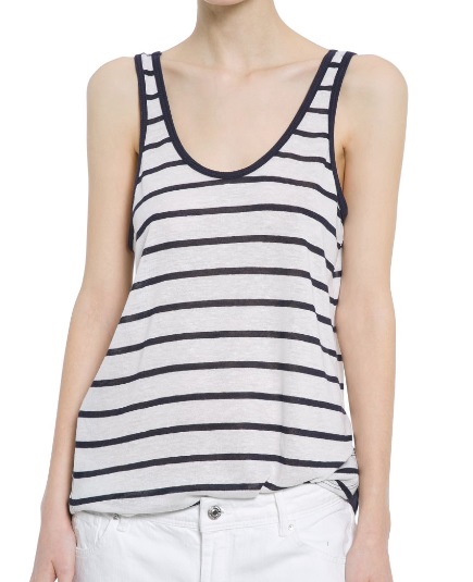 Easy holiday cover up from the beach for lunch, everyone loves a stripe Dita off-white sleeveless stripe top (61% off! RRP £17.99, SECRETSALES.com price £6.99).