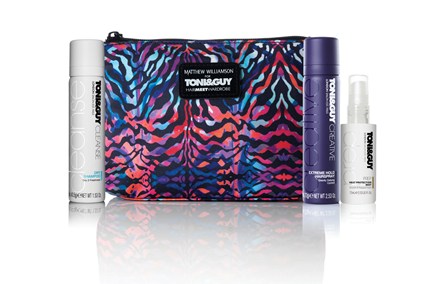 Matthew Williamson, of the elite Brit fashion designing set, has collaborated with TONI&GUY Hair Meet Wardrobe for the AW13 season. Williamson has created an exclusive limited edition “rainbow Zebra’ print wash bag to celebrate his affiliation with the professional haircare brand over the past four seasons of shows at London Fashion Week.
