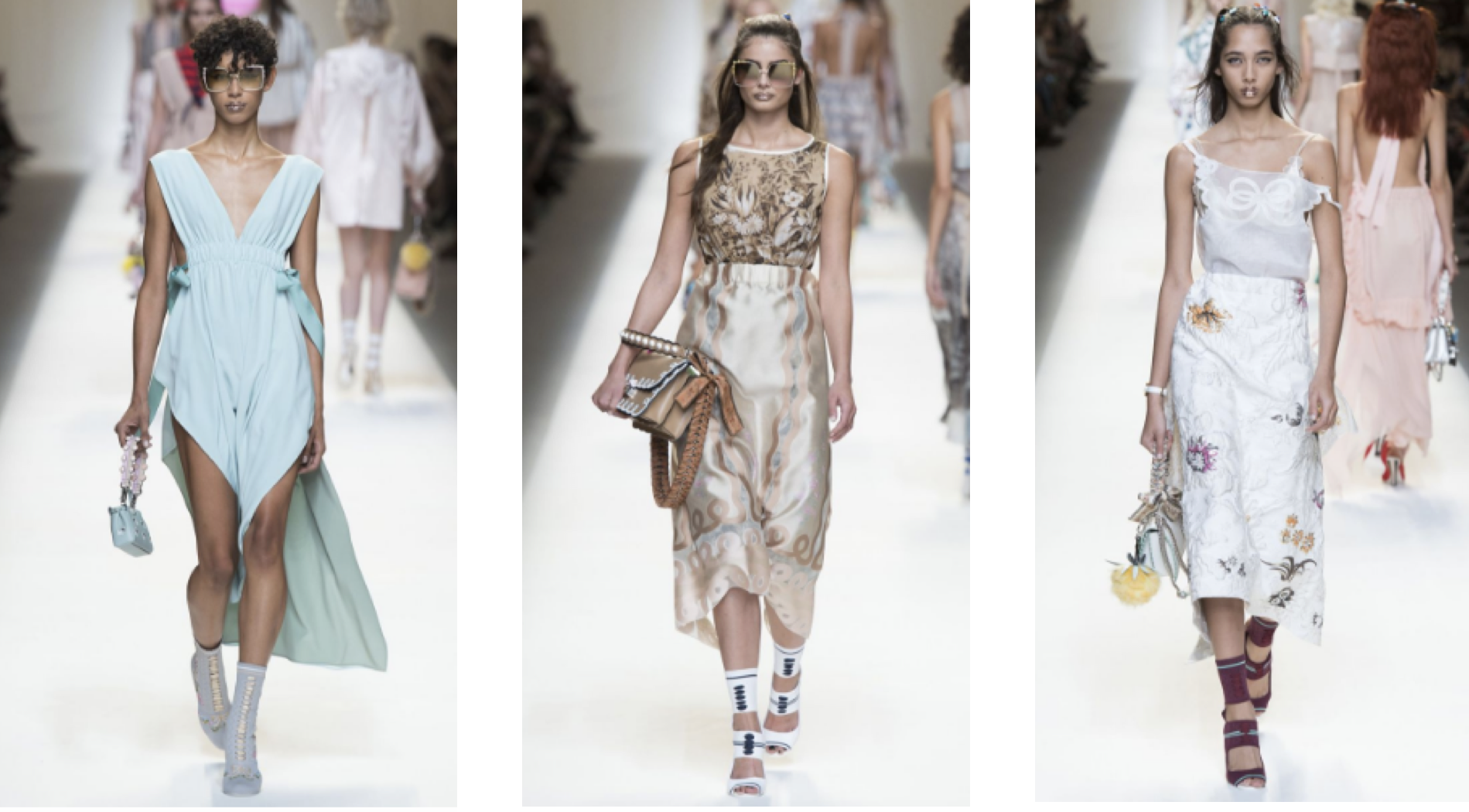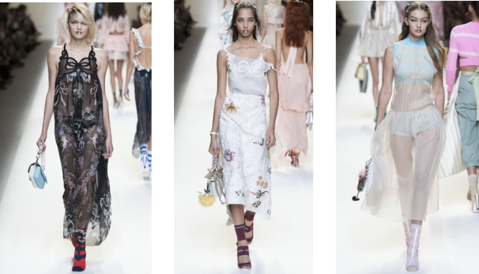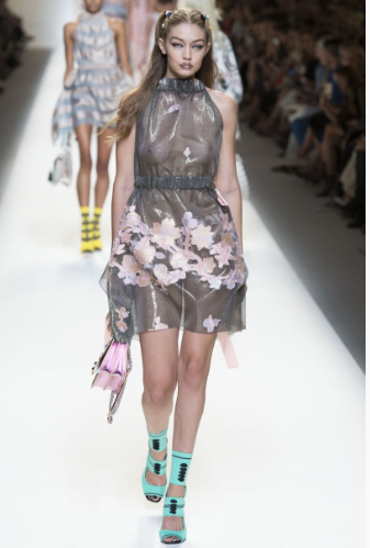 This morning’s Fendi show at MFW was one of the most highly anticipated of the week, and didn’t disappoint. We’re obsessed with their spring/summer 2017 ready-to-wear line that features a soft color palette and plenty of fluttery, sheer styles (Gigi Hadid slayed in a see-through mini-dress).