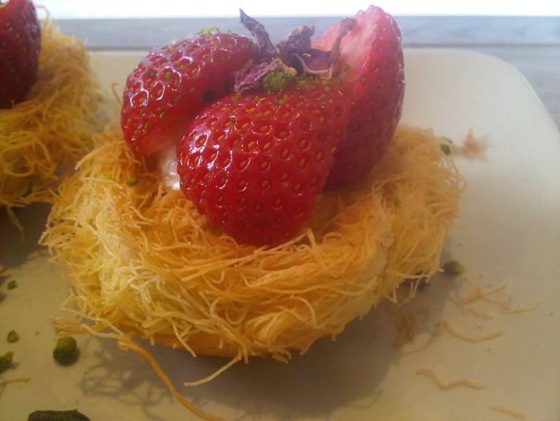 The thin flaky strands have an exquisite butteryness matched with strawberries and rose cream. Literally divine.