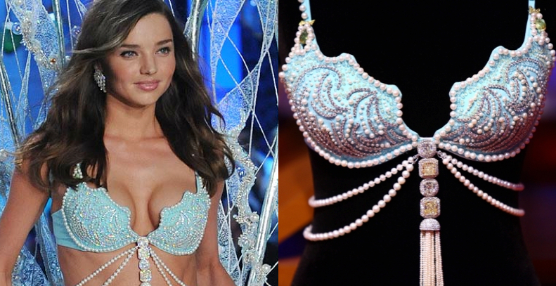 Having frequently graced the Victoria’s Secret Show catwalk in bras and wings encrusted with Swarovski crystals, Miranda Kerr has already enjoyed an association with the brand. In 2011 Kerr walked the $2.5 million Fantasy Treasure Bra down the runway to the standing ovation of her husband. The bra is covered in 142 carats of white and yellow diamonds, faceted citrines and aquamarines. Two giant 8 carat white diamonds also feature as well as two 14 carat yellow diamonds. Both Miranda Kerr and the bra were framed by the Passion Play Fan Wings, which boast 105,000 Swarovski crystals.