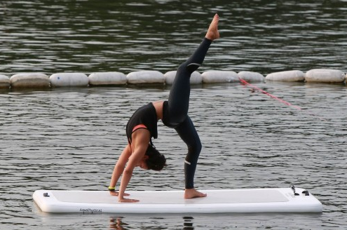 Aquaphysical founder Leila Frances Coleman worked with fitness professionals to develop the classes which feature thirty minute HIIT workout including burpees, lunges, squats,  v-sits and more in a fun, refreshing environment. Being on water requires constant concentration and core engagement, targeting those hard to reach muscles that are not engaged in conventional workouts. We really struggled to balance on some of the moves, but you fall off, rub the water out of your eyes and just get back on!