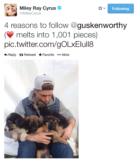 US skier Gus Kenworthy, who won the silver medal in men’s ski slopestyle last week, announced today that he is extending his stay in Sochi in order to finalize the legal adoption of four puppies from the streets of Sochi. The dogs had been making their home under a security tent in the mountains, and Kenworthy visited and fed them daily because he wasn’t allowed to bring them into the Athletes’ Village. The 22-year-old skier brought an incredible amount of attention to the Sochi stray issue after tweeting a picture of himself holding one of the pups he’s working to adopt. He received an overwhelming amount of support from people on Twitter, including Miley Cyrus!