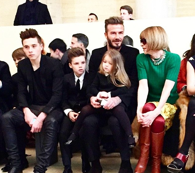 The Beckham family no less. David and co turned out to support Victoria at her show, grouped together in the front row next to Anna Wintour and her daughter.