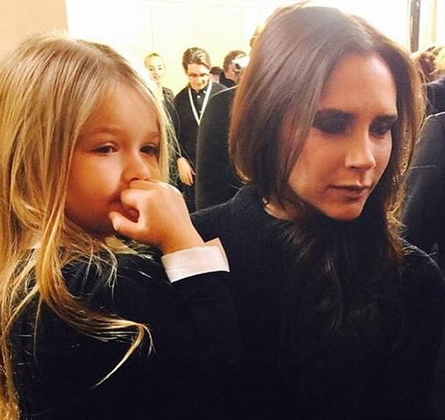 Reunited after the show, Harper was soon in her mother’s arms, long silky hair falling over her little black sweater and white collared shirt. That’s some serious style inspiration right there.