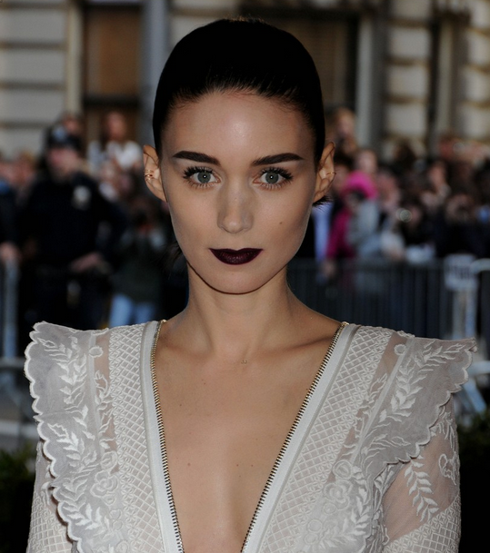 Rooney Mara took no prisoners when it came to her Met Ball make up. Heavily blocked-out darkened eyebrows framed her delicate features whilst a deep, dark blackberry shade with a matte texture added drama to her lips. Mara’s creamy flawless skin was left looking natural aside from some light contouring around the cheekbones, below the brows and the inner corner of the eyes, perfectly tempering the bold dark shades and the lightness of her dress.