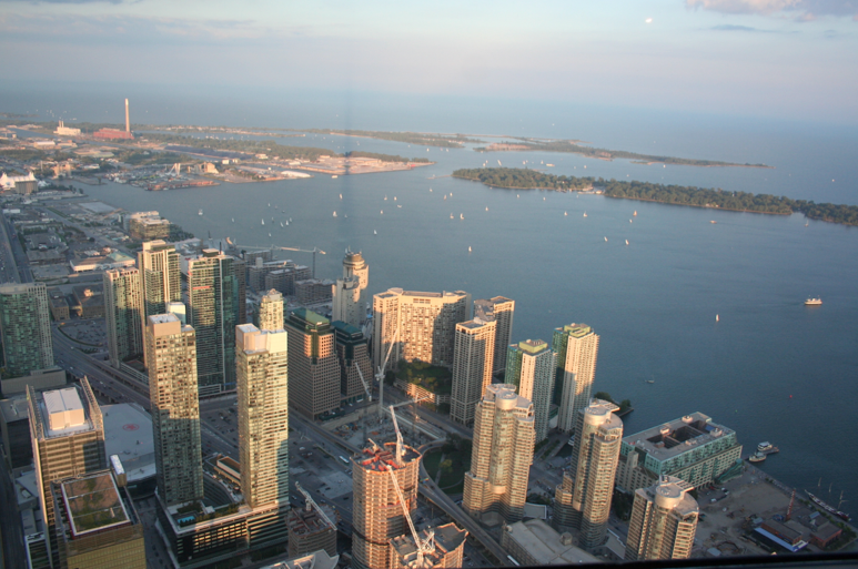 On our day of arrival, we didn’t have time to think about being tired, as we were lucky enough to be invited for dinner at the 1,815 foot high CN Tower which we had already spotted gloriously peaking out high above the city skyline on our way in from the airport.