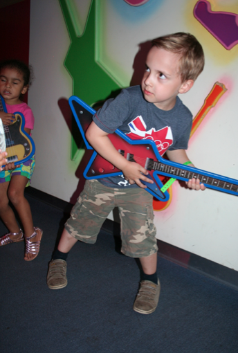 Arthur rocking out. They had a music studio set up with loads of guitars with different sounds and you could watch yourself on screen…well, just rocking out really.